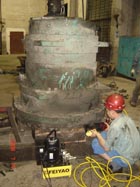 水泥廠磨輥(液壓扳手)緊固 液壓扳手對(duì)水泥廠磨輥進(jìn)行緊固。